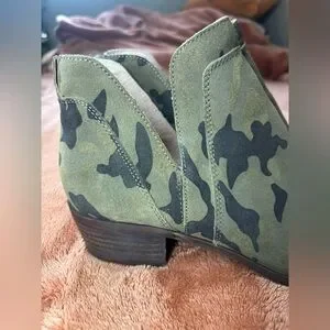 Lucky Brand Camo Suede Ankle Booties Western Low Heel Boots