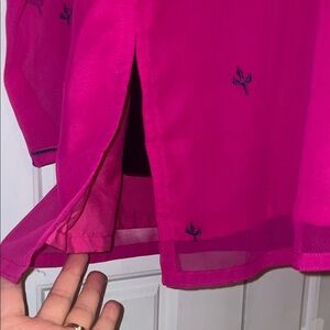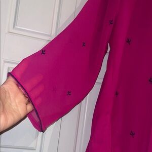 Add a pop of color to your wardrobe with this elegant magenta tunic. Featuring intricate embroidery, it's perfect for any occasion.