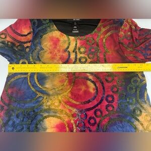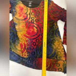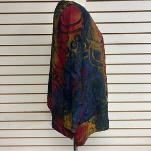 Vibrant abstract design. Long sleeves. Perfect for a bold look.