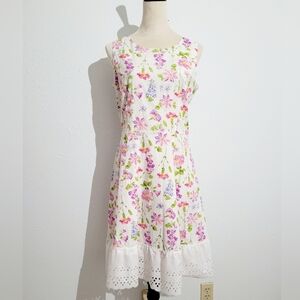Vintage Victoria Holley dress 100% Cotton Size 10 lovely floral lace side zip