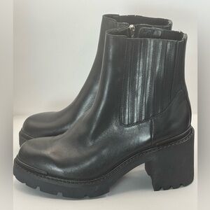 Sleek black leather boots. Chunky heel design. Perfect for stylish outings. Goes with everything. Leather. Brand new. Make an offer! And remember it's 20% off your total purchase if you buy any 2 items!