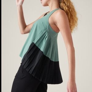 ATHLETA - Swing Forward Pleated Tank Top Green Jade Black