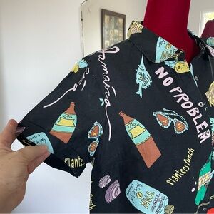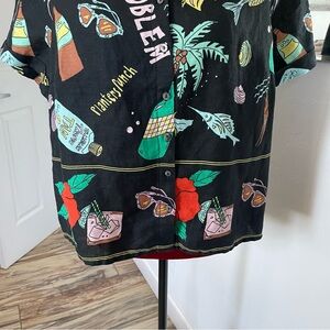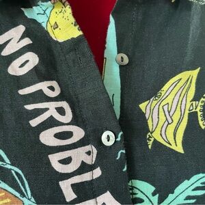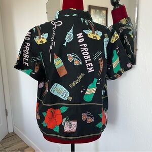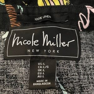 Nicole Miller New York Button Down Top 100% Linen Tropical Print Size Large Shoulder to Shoulder measures 17”. PTP measures 22”. Shoulder to bottom hem measures 22 1/4”. Excellent Condition!