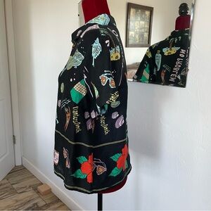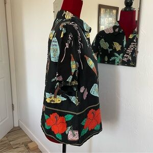 Nicole Miller New York Top 100% Linen Tropical Print Size Large Excellent!