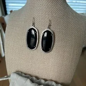 Kendra Scott Black ónix and silver Elle Earrings. In like new condition, only worn once. Dust bag included.