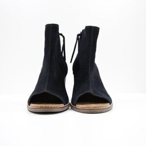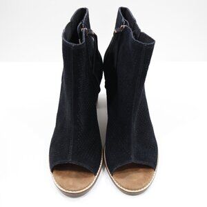 Toms Majorca Black Suede Leather 3" Block Heel Peep Toe Ankle Booties - 10