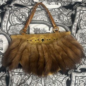 Adrienne Landau Brown Fur Shoulder Bag with Gold Accents