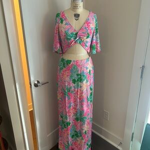 Lilly Pulitzer Pink and Green Floral Skirt Set