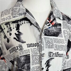 No Boundaries Newspaper Print Short Sleeve Shirt Men's Medium (38-40)
