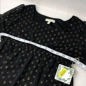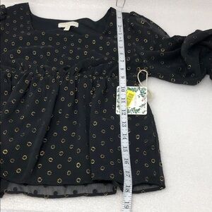 NEW Chelsea & Violet Top Black Gold Babydoll Sheer Sleeve Blouse Girls M 10/12