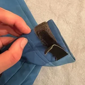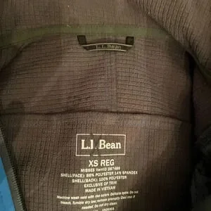 Blue L.L. Bean zip up Jacket, zip up pockets on both side and right side has a zip up pocket. One of the sticky grips is broken as pictured