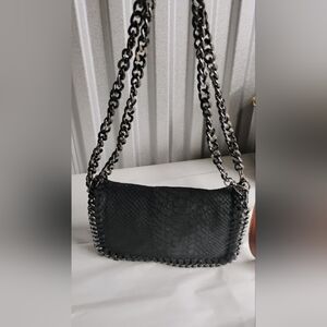 Elegant black women's bag with striking chain details. Perfect for any occasion. Used but in good condition