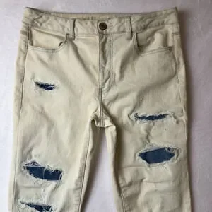 American Eagle Jeans Womens 14 White Hi-Rise Jegging Distressed Denim Stretch