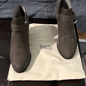 Eileen Fisher Ives Tumbled Nubuck Bootie. Chic taupe ankle boots with stylish cutout design. “Vero Cuoio" is an Italian phrase that translates to "true leather" or "real leather". Box and dust bag included.