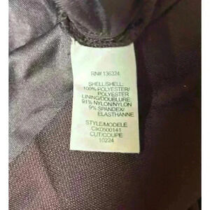 Material: Shell - 100% Polyester / Lining - 91% Nylon and 9% Spandex