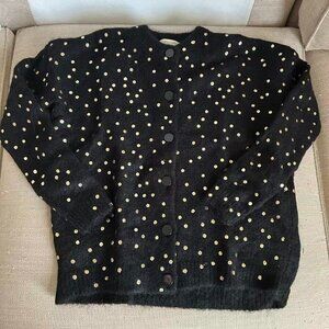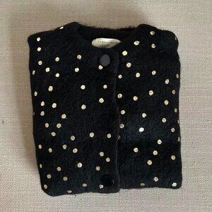 Sezane Talitha Cardigan Small Black/Gold Dots French Causal Knit Soft