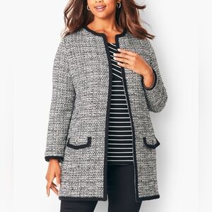 Talbots Textured Tweed Open Front Cardigan Jacket Black White Women's 1X Petite