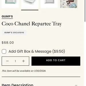 Elegant CHANEL tray featuring a timeless black and white design. Perfect for decor or gifting.