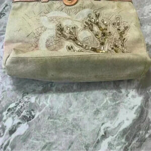 AUTHENTIC COACH 17031 AUDREY CORAL CANVAS TOTE PURSE BAG CREAM PINK VACATION