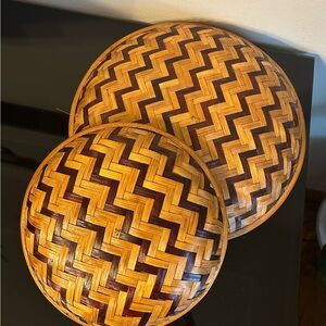 Chevron Pattern Woven Rattan Baskets (set of 2)