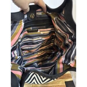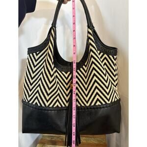 Big Buddha Portofino Large Vegan Leather Black & Cream Chevron Shoulder Bag Boho