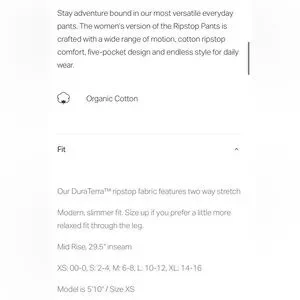 NWT Vuori Ripstop Pant Long Charcoal DuraTerra 2 way stretch Slim Fit Women’s XS