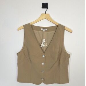 Keywords: Madewell vest, sleeveless top, brown vest, tan vest, button front vest, career vest, women's vest, size 8 vest, casual vest, work vest, office vest, new with tags, NWT, Madewell top, vest top