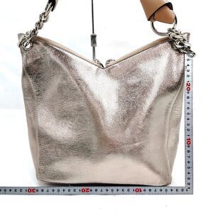 • Flat taupe leather shoulder strap with gorgeous large chainlink flanking either end of the strap