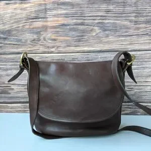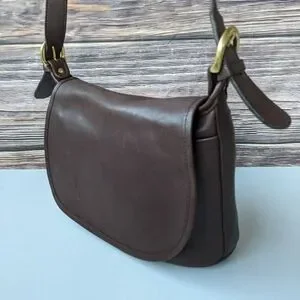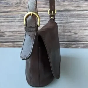 Vintage Coach Fletcher Shoulder Saddle Bag, style number 4150, in brown or mahogany leather. This popular silhouette was first introduced around 1995 and is known for its durable glove-tanned leather and classic design.