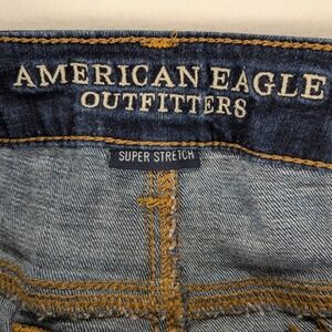 Embrace a flattering silhouette with these American Eagle Outfitters Super Stretch Skinny Kick jeans. Crafted for ultimate comfort and style, these jeans feature a dark wash that transitions effortlessly from day to night. The super stretch fabric ensures a perfect fit and freedom of movement, while the subtle kick flare at the hem adds a touch of vintage modern flair.