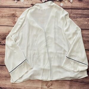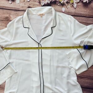 ❤️NEW! Gibson Latimer Pajama Style White Blouse with Black Piping