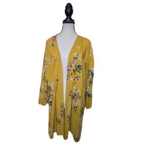 Cotton On kimono, floral cardigan, yellow duster, boho kimono, summer layering piece, tropical print kimono, floral cover up, lightweight cardigan, beach kimono, women’s XS/S