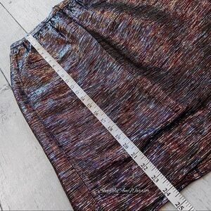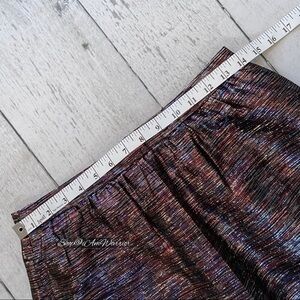 Just in: J.Crew Collection sleek pencil skirt in stunning multicolor (burgundy, purple, black, silver) metallic shimmer in flattering midi length is perfect with a blouse and heels for a glam night out. Shown here with my velvet Vince blazer, J.Crew shimmer T-shirt and J.Crew crinkle foil silver belt, all sold separately. Necklace nfs. Lined, side zip. EUC, retailed at $325. Generously priced at $100 off! Size 4, see photos for measurements.