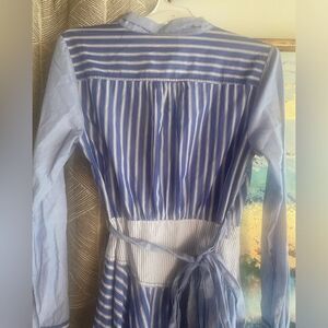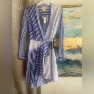 blue and white striped dress, long sleeves and the dress is wrap around new with tag