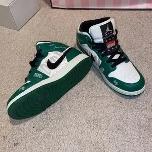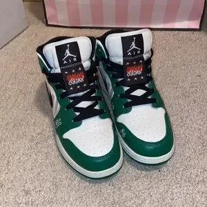 Air Jordan 1 Mid-Top Kids Youth Vibrant Green and White Sneakers Limited Edition