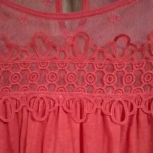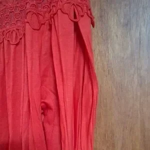Elegant scarlet blouse with intricate lace accents. Ideal for any occasion.