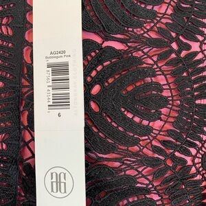 Alton gray bubble gum pink dress with black lace 6, new with tags, no visible flaws, 95% polyester, 5% spandex