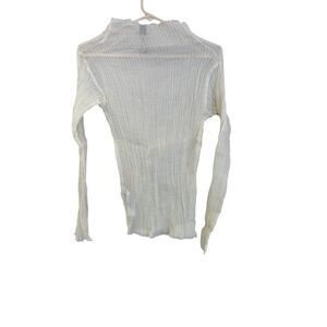 Massimo Dutti Womens Top Small Ecru Textured Long Sleeve Blouse 5100/555 NWOT