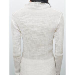 Massimo Dutti Womens Top Small S Ecru Textured wool silk Blouse 5100/555 NWOT