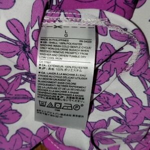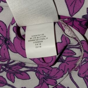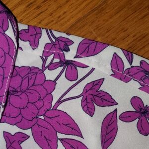 This gorgeous floral print is very vibrant purple! Very light weight and flowy fabric. Buttons down the back as well.