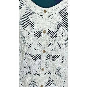 Womens Cream Crochet Cardigan Beachy Grandma Cottagecore Doily Grandmillennial L