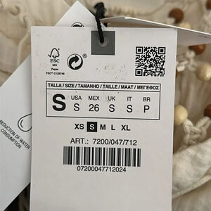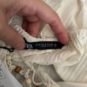 Chic and bohemian, this Zara ecru beaded cotton top features delicate bead detailing, lightweight cotton fabric, and a breezy silhouette perfect for warmer days or layered looks. Stylish yet effortless, it pairs beautifully with denim, skirts, or wide-leg pants.