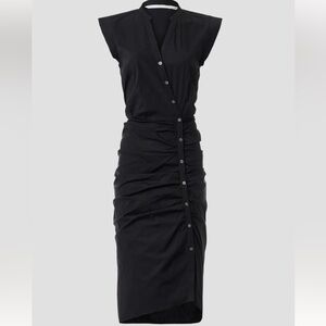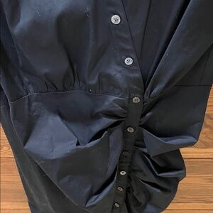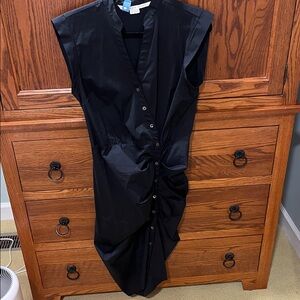 Veronica Beard Black Ruched Assymetric Button Shirtdress