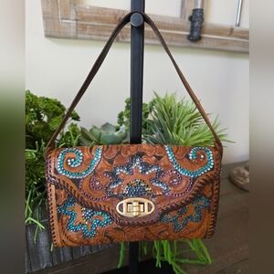 Rare Roth And Madge Handtooled Leather Swarovski Crystal Bag- Collectable OOAK