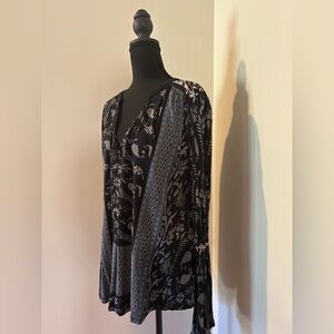 Stylish blouse with unique patterns. Lightweight and flowy fabric.