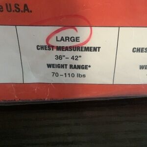 Dog Safety Vest / repels ticks and mosquitoes. Made in USA. Please see pictures for measure chart. Reflective band makes it good for walks and sports. Lightweight. 2 Large and 1 Small available. In original packaging. Some of the packaging is coming opened along edges.