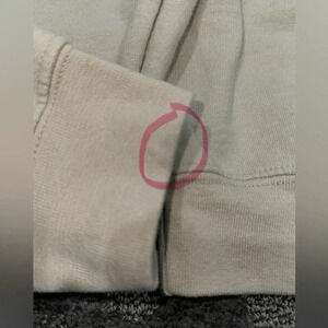 Gildan heavy duty. Worn once. There’s a little bit of spotting at end of sleeves. Tried to get a picture