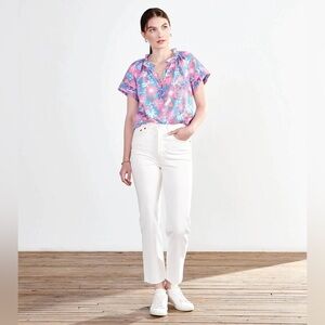 Hatley Canadian Women’s ladies Wild garden Sylvie blouse - pink blue floral flowers Size xs extra small In Excellent Used Condition Ruffles Buttons at the front Spring Summer Resort wear Vacation Cruise Bright Garden