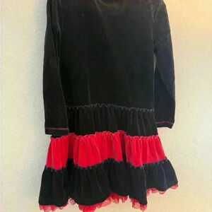 Hanna Andersson Dress Black Velvet Tiered Embroidered Winter Christmas Size 5