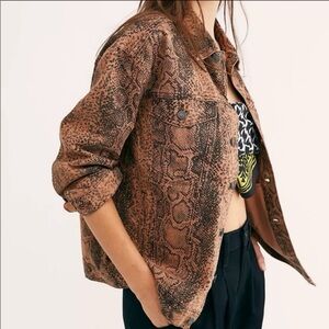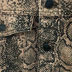 EUC. Featuring a classic trucker-style silhouette with a button front and multiple pockets, this jacket combines edgy style with practical details. The textured snake print adds a touch of boldness, making it a standout piece that can be paired with jeans, skirts, or dresses for an effortlessly cool look.